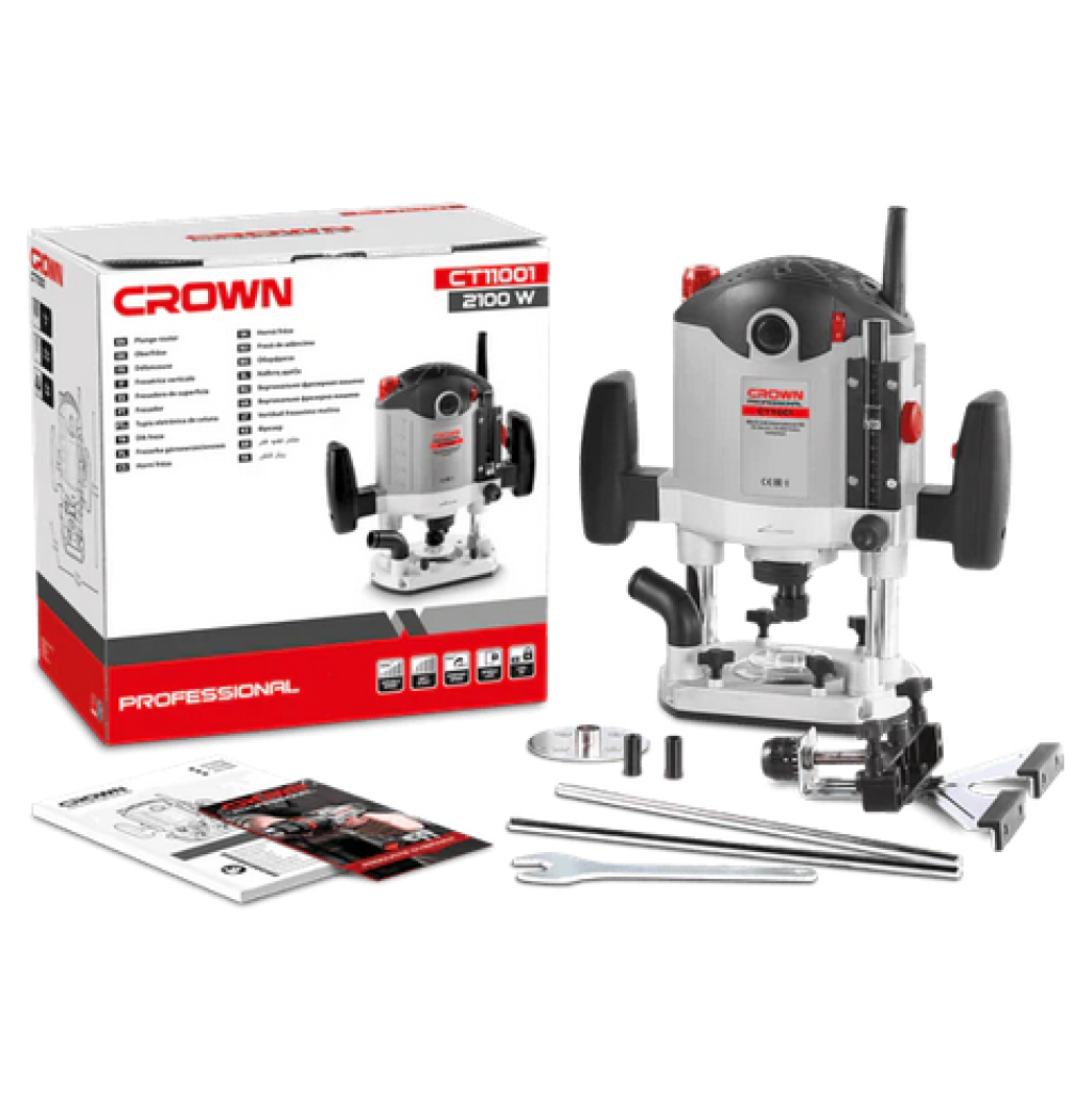 Crown CT11001 Freze, 2100W gücüyle ahşap ve benzeri malzemelerde hassas kesim ve şekillendirme yapmanızı sağlayan güçlü bir elektrikli freze makinesidir. Ergonomik tasarımı sayesinde uzun süreli kullanımda bile konfor sunar ve hassas ayarları ile profesyonel işlerin üstesinden gelir.